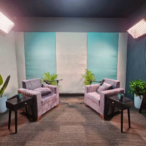 Record podcasts with up to six people in our fully-equipped studio. We can comfortably accommodate a crew of up to 15 members and provide a makeup/changing room for your convenience. Our studio is packed with all the professional podcast gear making it easy to create outstanding content.